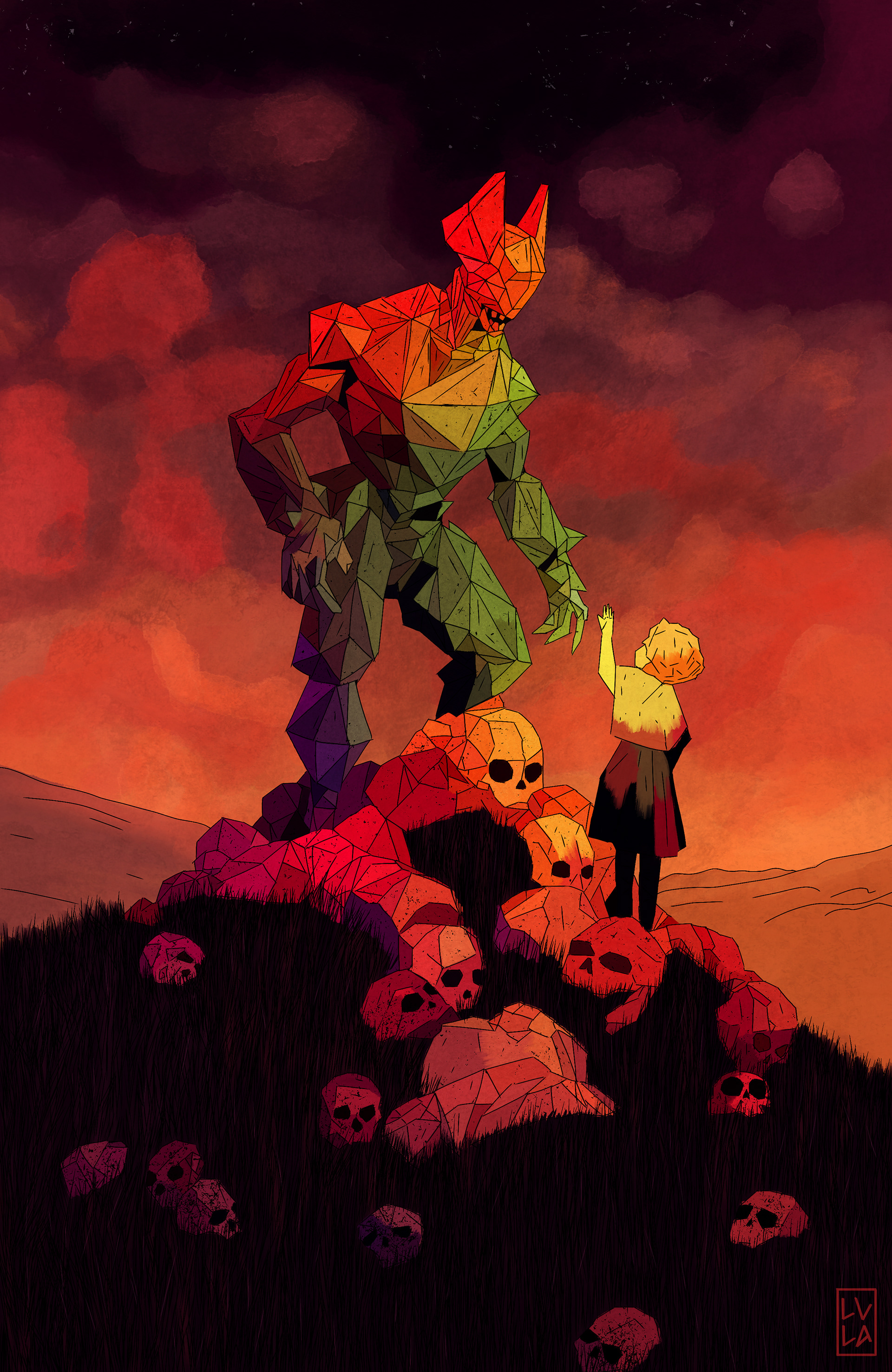 A spiritual summons atop a mound of history, where the human form reaches upward toward an overwhelming cosmic authority.